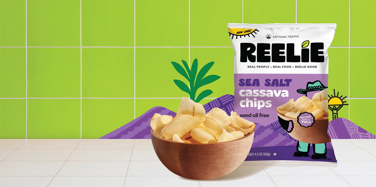 Reelie, formerly Artisan Tropic, is a family-founded snack brand rooted in Colombia and based in the US. A family member's autoimmune diagnosis pushed the founders to rethink what goes into food. They make crispy, crunchy snacks from tropical ingredients like plantain and cassava. Real People + Real Food = Reelie Good. The company has created over 340 rural Colombian jobs while supporting clean water, housing, and education.