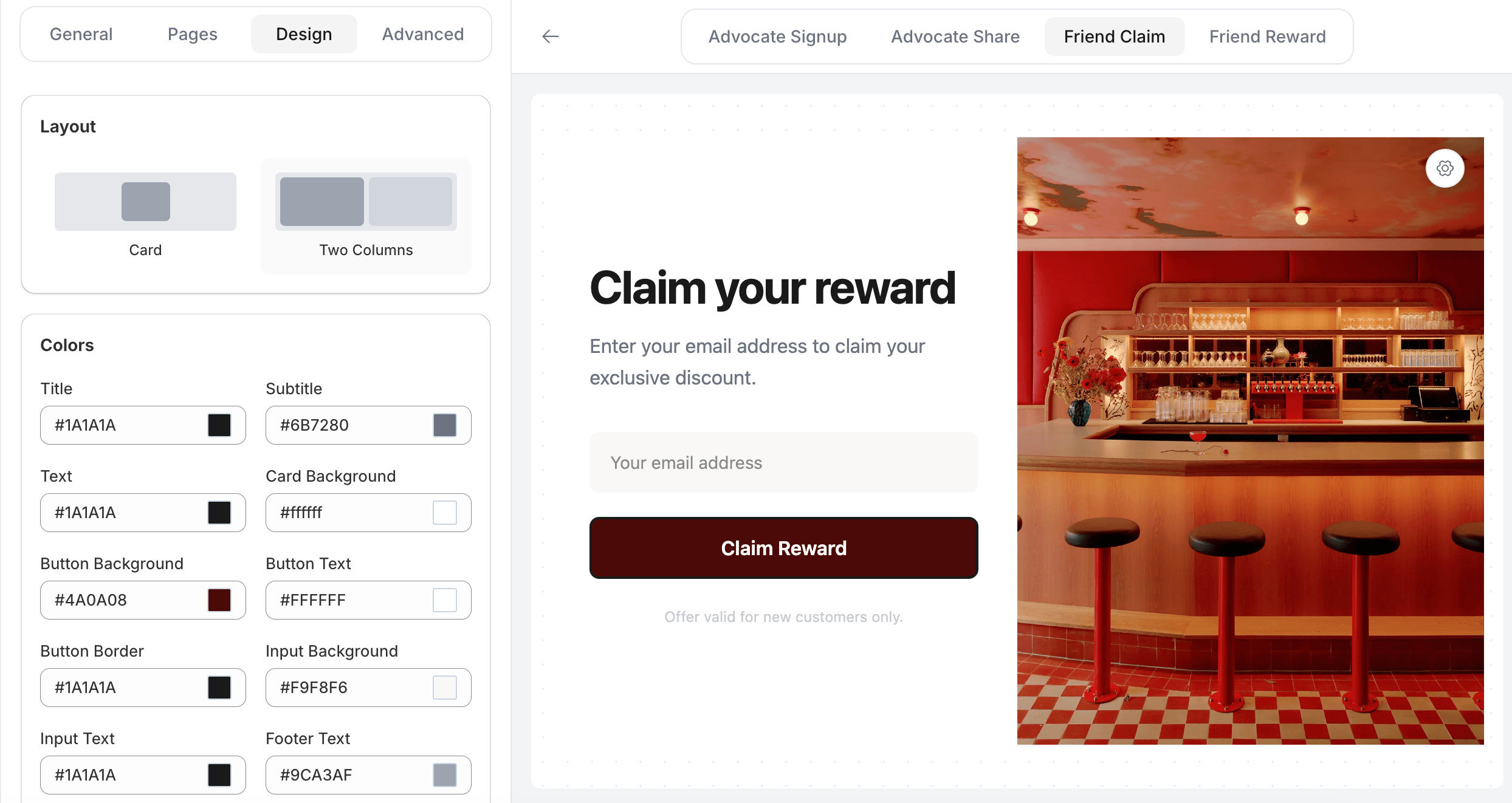 You can offer percentage discounts, fixed amount discounts, free products, free shipping, or loyalty points. Rewards can be different for advocates and referred friends, giving you flexibility in designing your program.